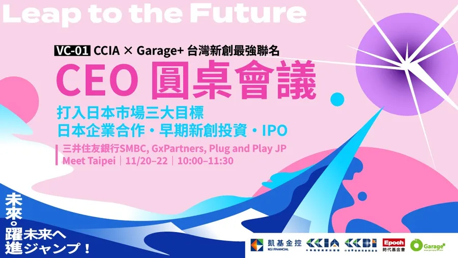 這次 2025 Meet Taipei 「CCIA X Garage+台灣新創最強聯名」,邀請三位來自日本創投與加速器核心圈的重量級講者,帶來三場連續對談,從 IPO 輔導、早期投資、到加速器實戰經驗,完整解析日本市場的進入策略與成功關鍵。