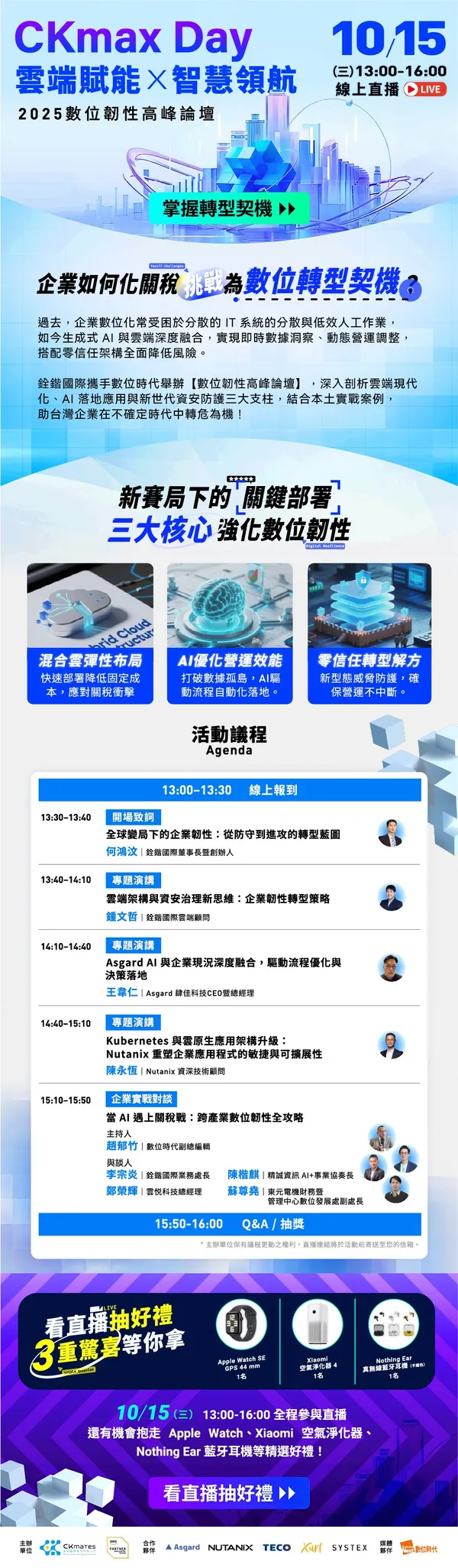 現任 Nutanix 台灣資深技術顧問,擁有超過十年企業儲存領域規劃、建置與效能調校之實務經驗,隨著超融合概念發展且技術日益成熟,從致力於協助客戶將各種系統服務,包括企業核心應用與資料庫系統,由傳統三層式架構轉移至 Nutanix 混合多雲平台,進而推動客戶實現 Kubernetes 和 AI 應用,打造一個擁有極致效能並具備靈活擴充彈性的新世代智慧資料中心。