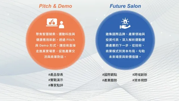 串聯自行車產業、運動科技、健康醫療與新創生態,促進企業、新創與資本之間的實質交流,打造具延續性的合作場域。