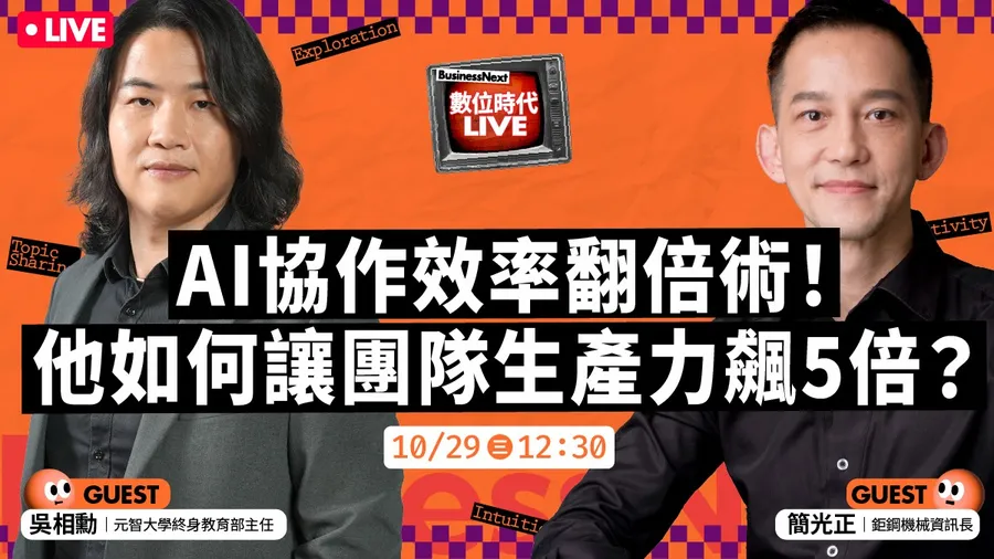 直播時間:10/29(三) 12:30  數位時代 Youtube 頻道直播