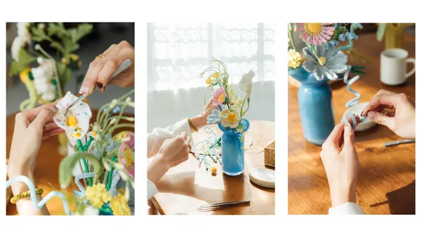為日常換一個觀察視角!居家品牌 HOLA 今年春夏發起「Bloom Lab 花藝混搭計畫」,將選物與搭配的思考,轉化為一場療癒的花藝體驗,大膽將積木花朵的幾何線條與鉤針、羊毛氈的溫潤質感,以及各色春夏擬真花材揉合在一起。邀請你拋開材質的既定框架,在重組過程中,感受異材質相遇的意外驚喜。
