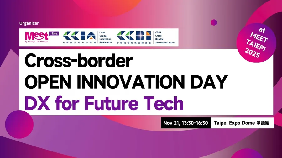 由Meet Global與中華開發資本(CDIB Capital Group)共同主辦的Cross-border Open Innovation Day,即將在Meet Taipei 2025登場!Open Innovation Day現場聚集來自台灣與日本的領先企業與頂尖新創,共同進行深度圓桌對談。