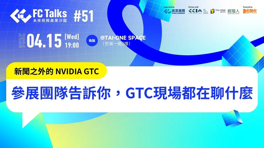 4月 FC Talks,我們要把 GTC 現場第一線的觀察帶回來!邀請幾位實際到 GTC 現場的團隊,來聊聊他們在展會第一線看到的事:今年大家都在關注什麼?感受到哪些新的需求和變化?